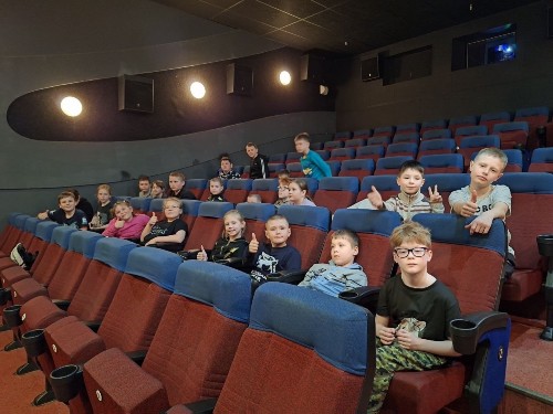 После этого ребята посетили кинотеатр «Кинофокс», посмотрели мультфильм «Коты Эрмитажа» (2часть).