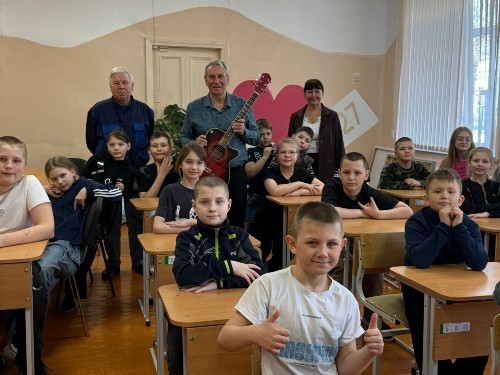 На музыкальном часе дети не только слушали песни, которые исполнял Одинцов Александр Алексеевич, но и с удовольствием пели сами. Как настоящие артисты!
