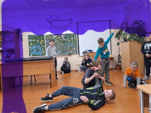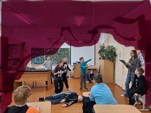 Советник директора по воспитанию, Алёна Алексеевна, подготовила для ребят несколько сказок для инсценировки. Школьники легко включились в работу и вжились в роли Колобка, Волка и Лисы и других героев известных сказок. Даже без костюмов у ребят легко получилось передать характеры персонажей.