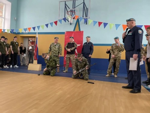 в составе судейской коллегии- ветераны десантных войск, участник специальной военной операции Дмитрий Черенко, а также лучшие кадеты ВПК «Крылатая гвардия» Ивановы Кирилл и Денис, которые продемонстрировали сборку АК с закрытыми глазами.